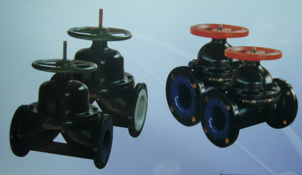 襯膠、襯塑、搪瓷隔膜閥是一種特殊形式的具有截斷功能的閥門,其啟閉件由鋼質閥瓣與軟質材料(橡膠和氟塑料復合)制成的隔膜組成,并將閥體內腔隔開以達到截斷管內介質之目的?;窘Y構1、復合隔膜將閥體下部腔與閥蓋內腔隔開,并與之形成直流通道,使隔膜上部的閥桿,閥瓣等內件與介質完全隔離,省去填料密封結構,介質的內漏和外漏可同時避免。